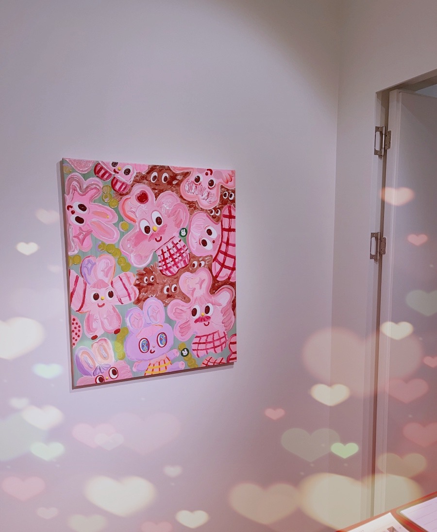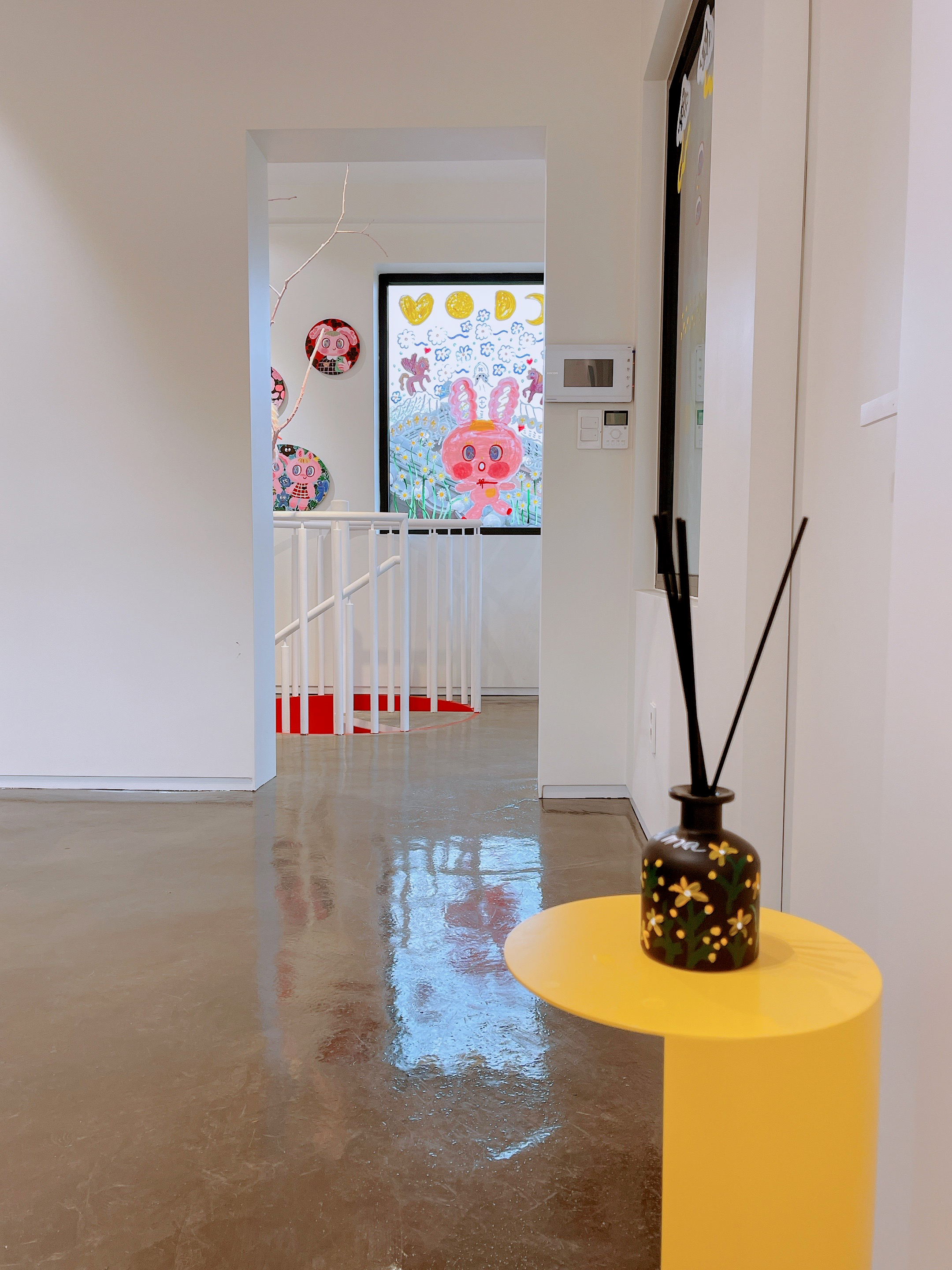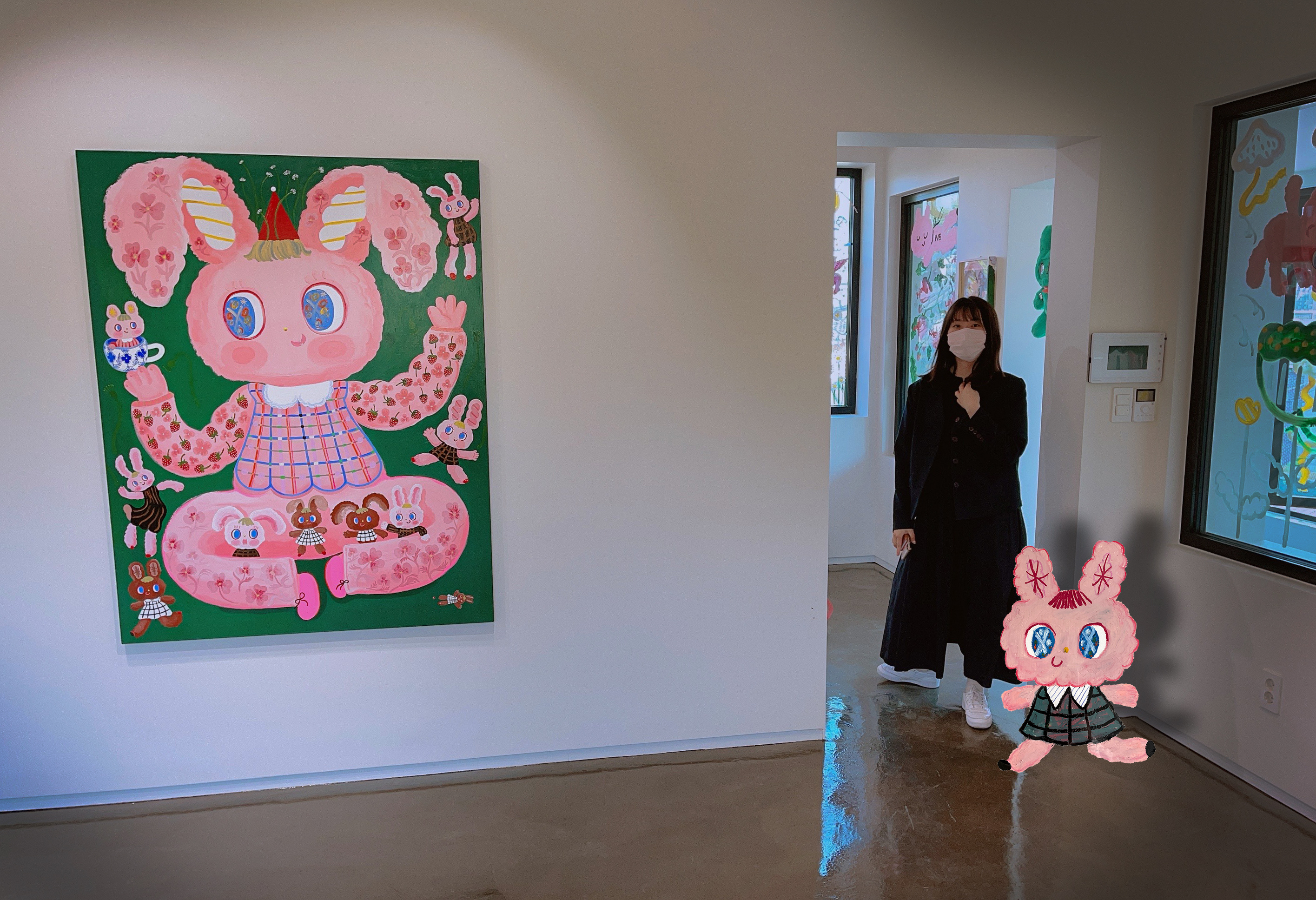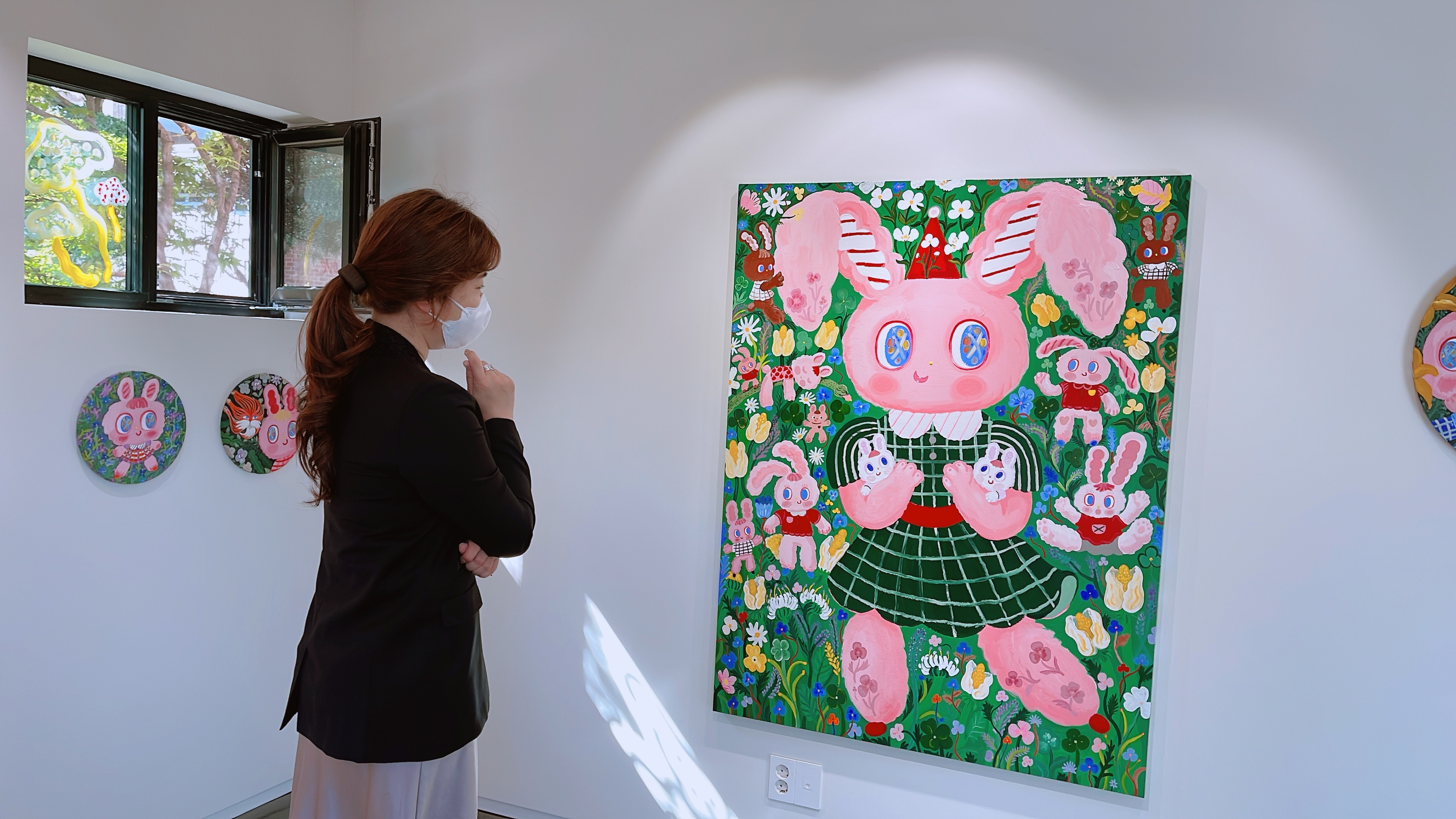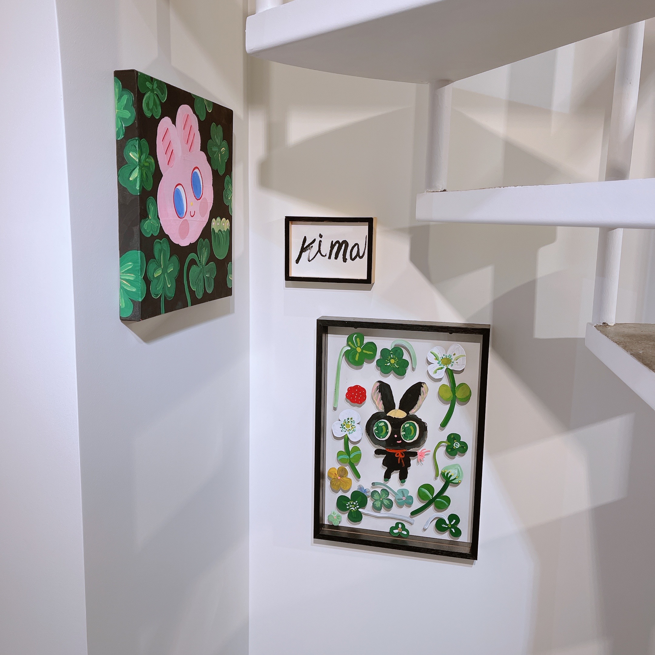 It is time to harvest the story of the rabbit family in the painting, which was planted on a canvas created by Kima's pure sensibility when she was a girl who climbed on a light purple lilac tree and was drunk on the scent of flowers, with our own interpretation. There is no need for translation.