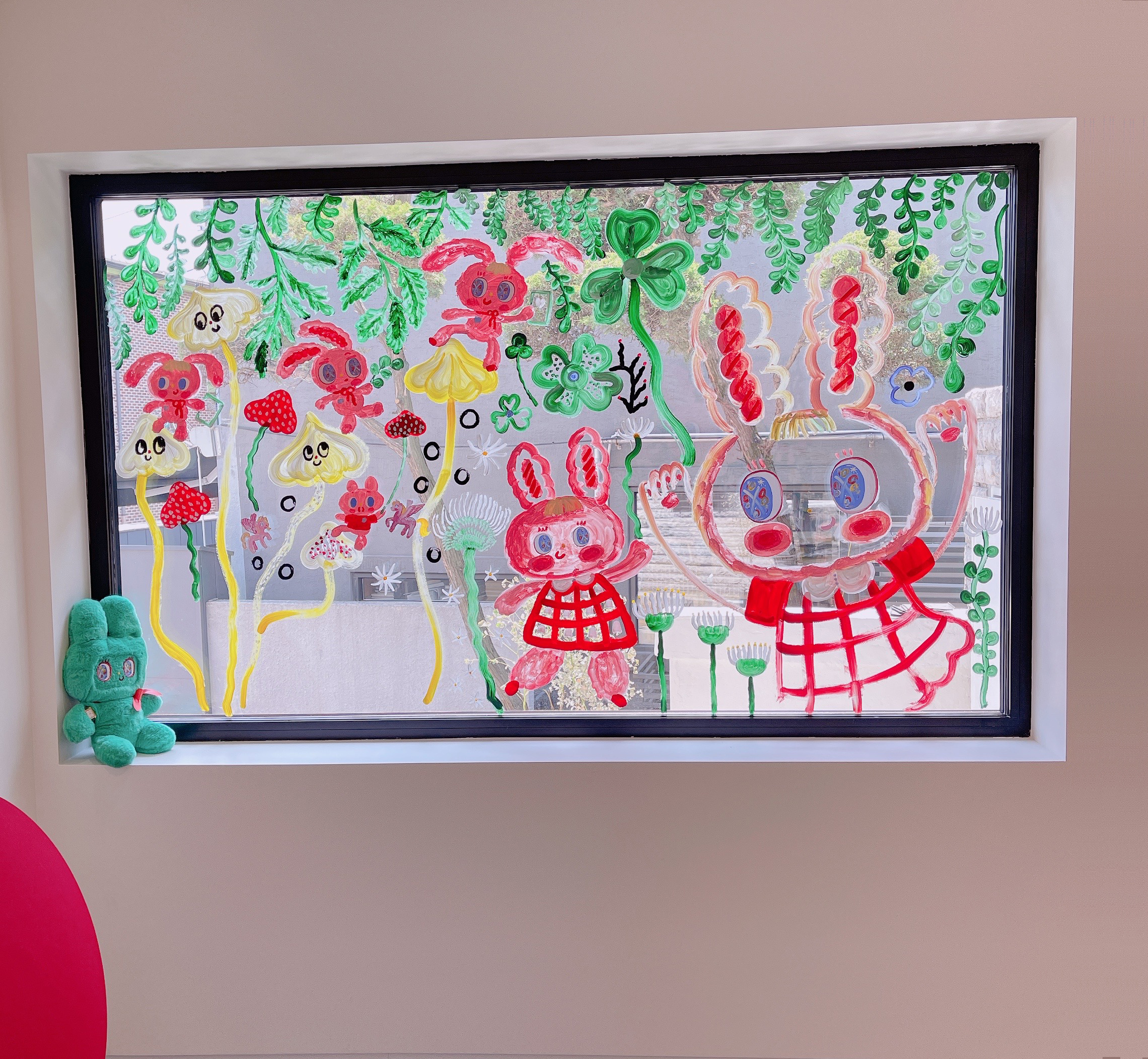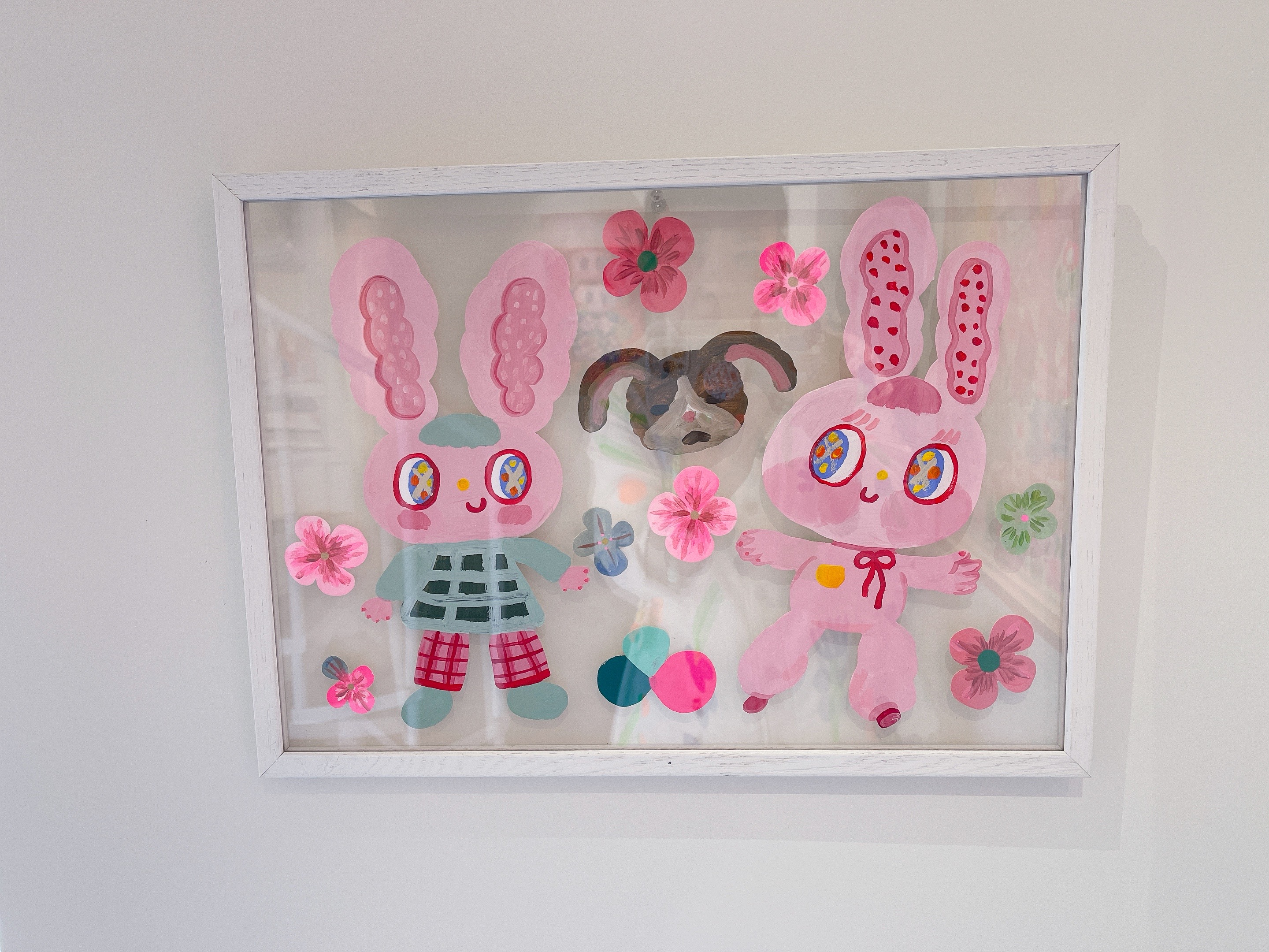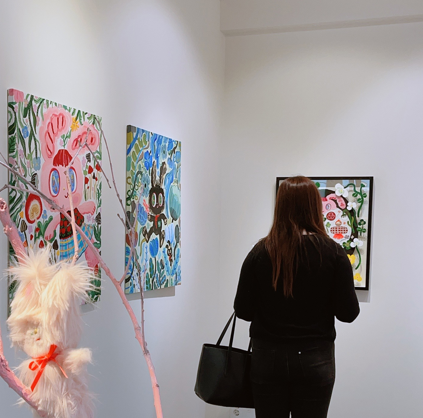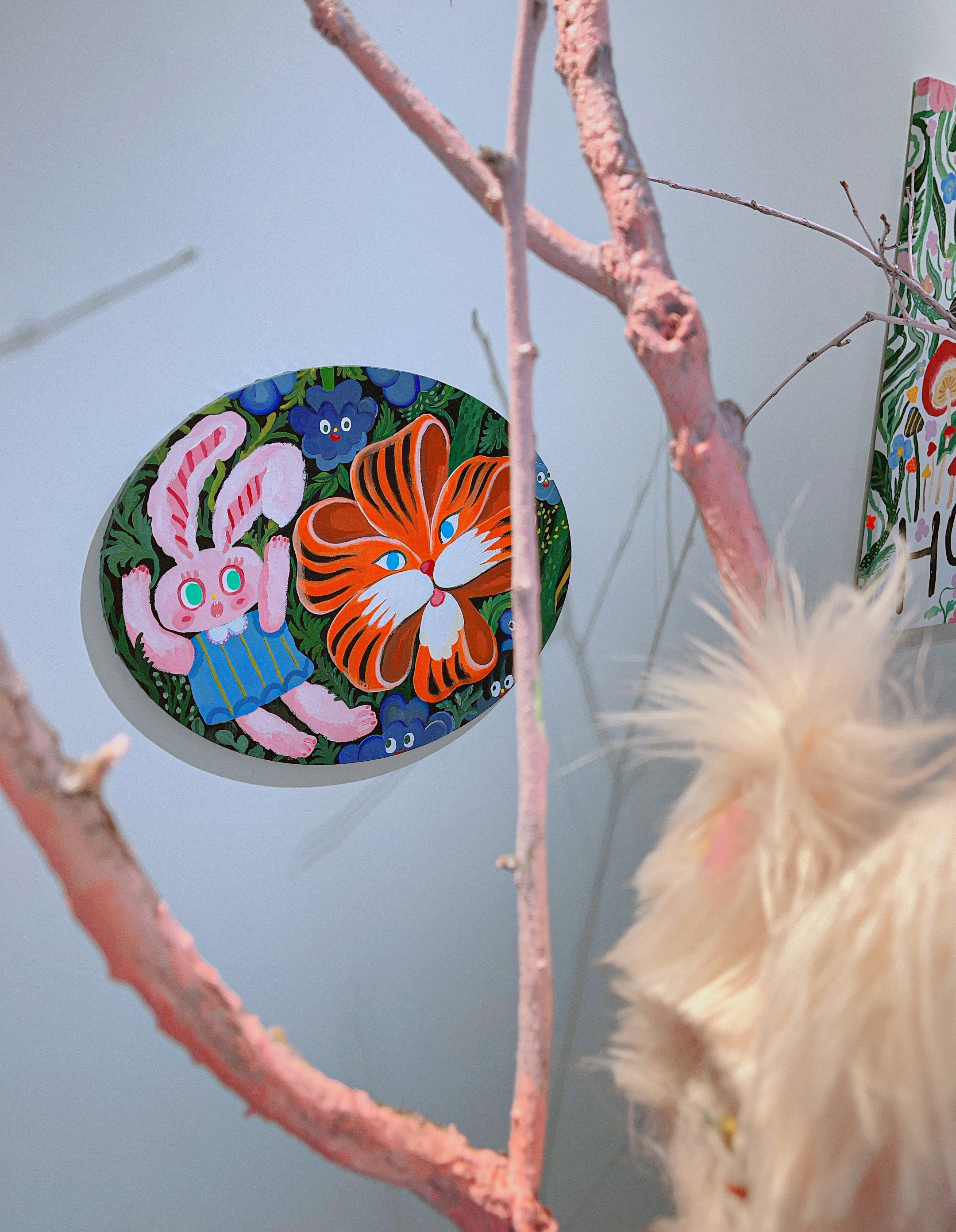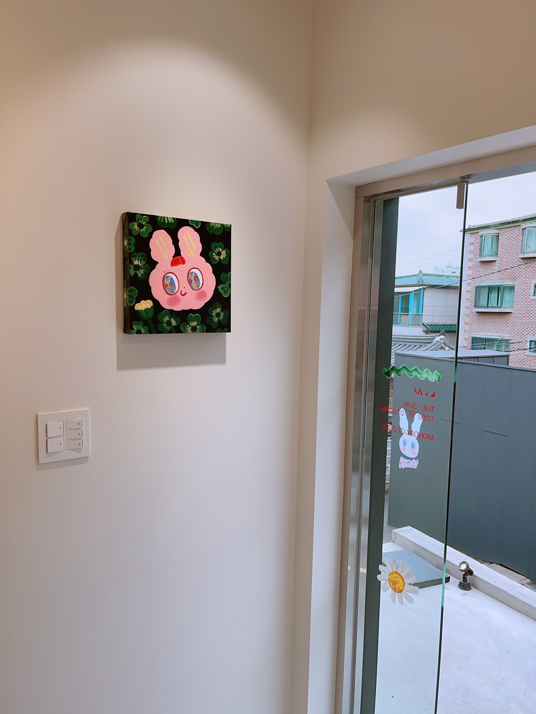 It is time to harvest the story of the rabbit family in the painting, which was planted on a canvas created by Kima's pure sensibility when she was a girl who climbed on a light purple lilac tree and was drunk on the scent of flowers, with our own interpretation. There is no need for translation.