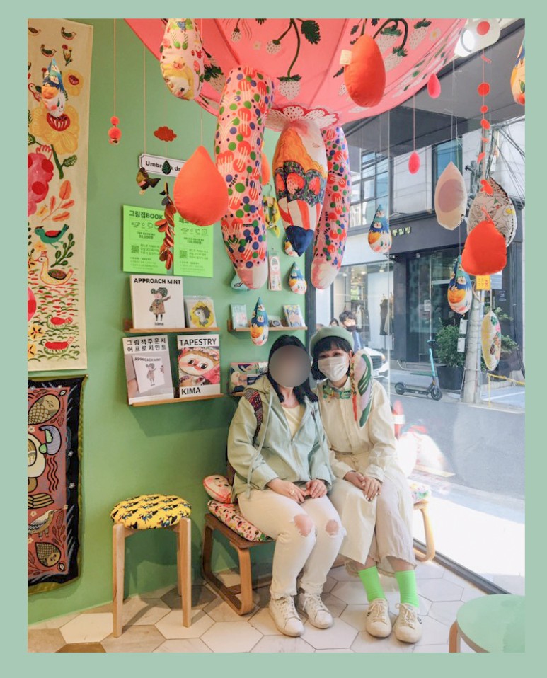 내가 받았던 작업실에서의 위로가, 그림 속 친구들의 유쾌함이, 그저 따뜻하고 온전하게 전달되길 희망한다. < 작가키마 >